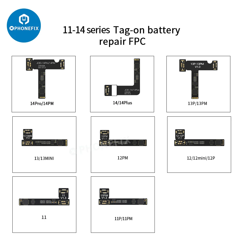 JCID battery board repair flex cable for iPhone 11-15 Pro Max/SE3 Battery data health warning removing. JC tag-on battery repair flex cable for removing non-genuine battery warning on iPhone 11 to iPhone 15 Pro Max and iPhone SE3, fixes iPhone battery health menu warning ‘unauthorized’ battery replacements. JCID battery tag-on repair FPC to erase the Non-Genuine Battery Warning pop up on iPhone.