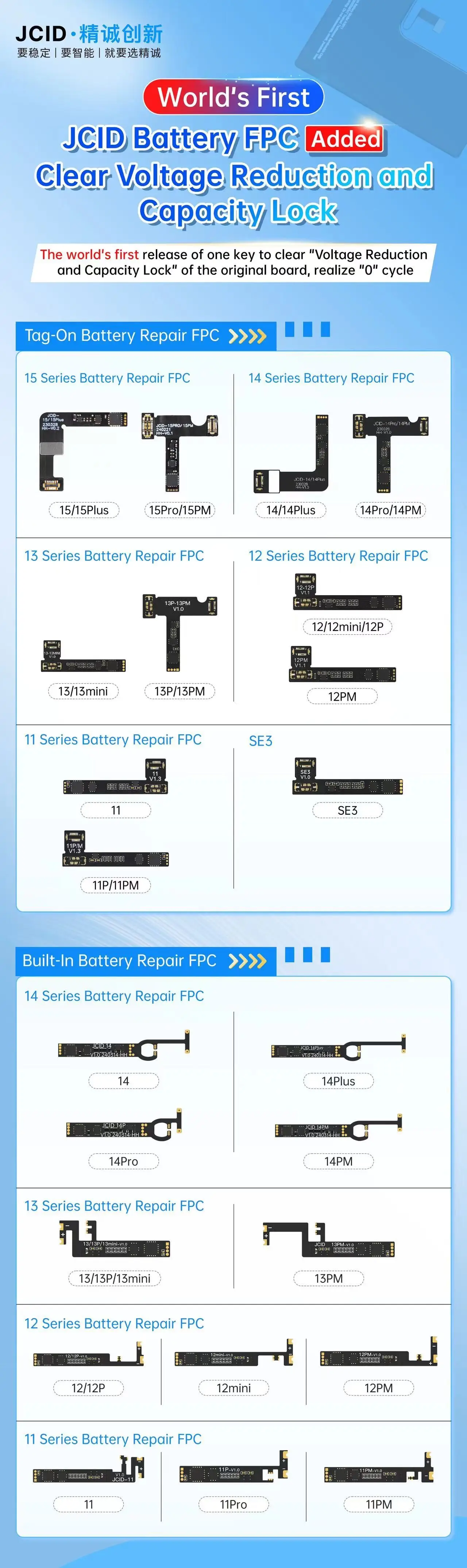 JCID has released iPhone 15 Series Tag-on Battery Repair FPC Flex Cable. JC battery repair tag-on FPC cable for iPhone 15/15Plus/15 Pro/15 Pro Max, no reboot required, anti-install monitor, low power dissipation. - Updated on April 3, 2024.