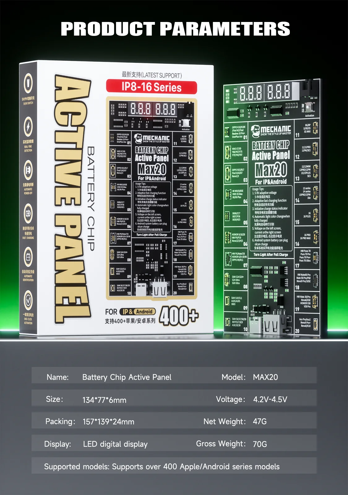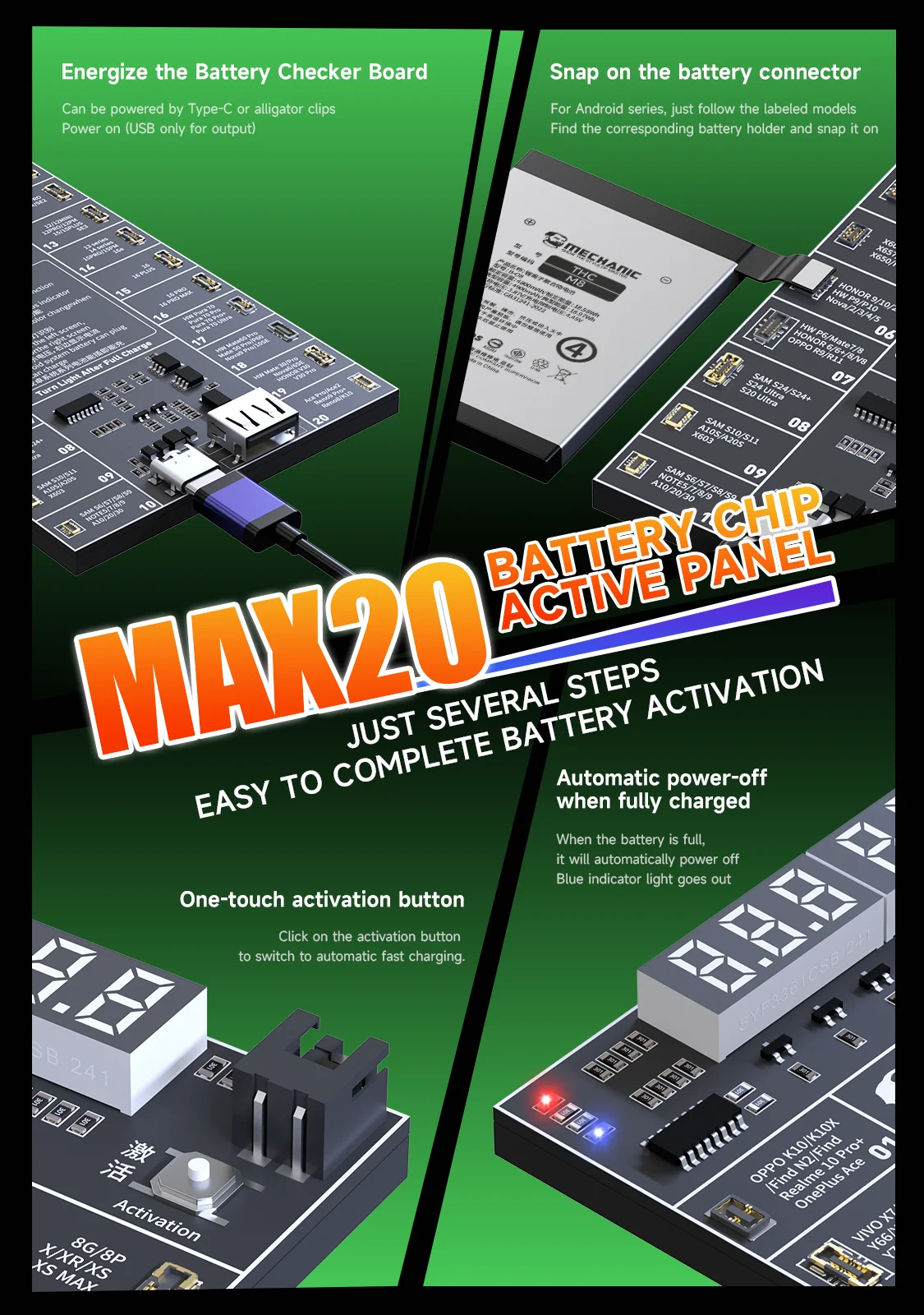 MECHANIC Pro20 Max20 Battery Activation Detection Board Battery Fast Charge for iPhone Huawei Sam Android One-click Activation