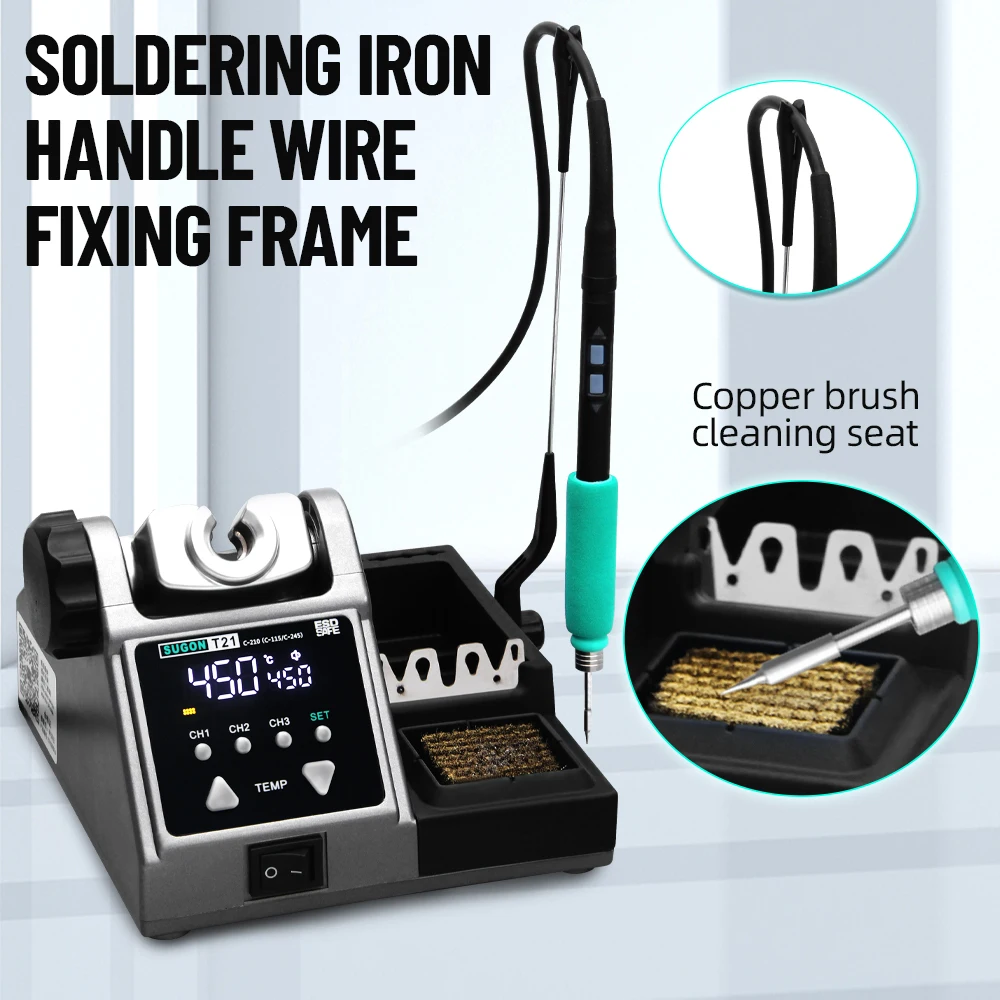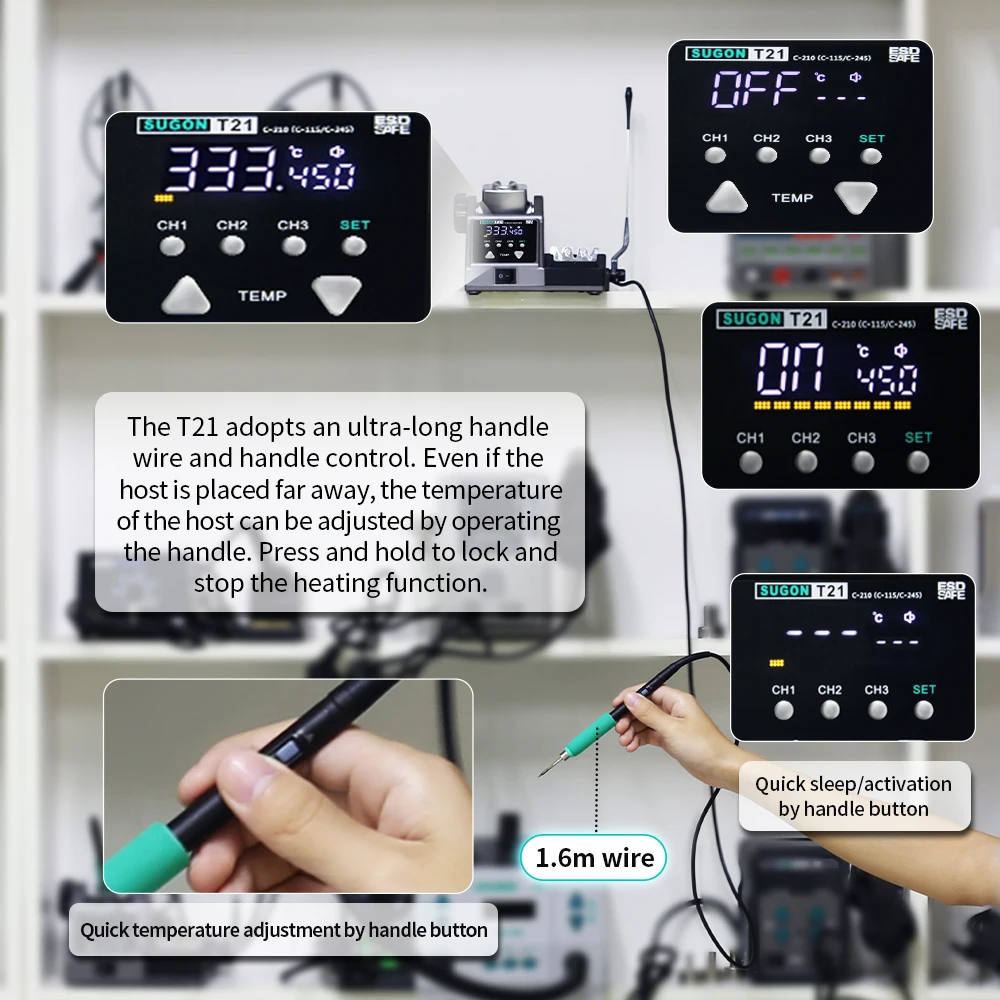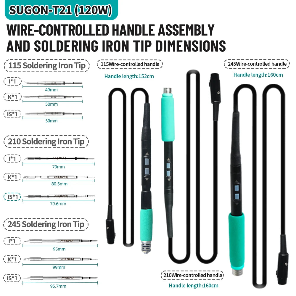 SUGON T21 120W Soldering Station 1.6m Wire-Controlled Handle Electronics soldering iron Tip 115/210/245 Rework Station BGA Tools